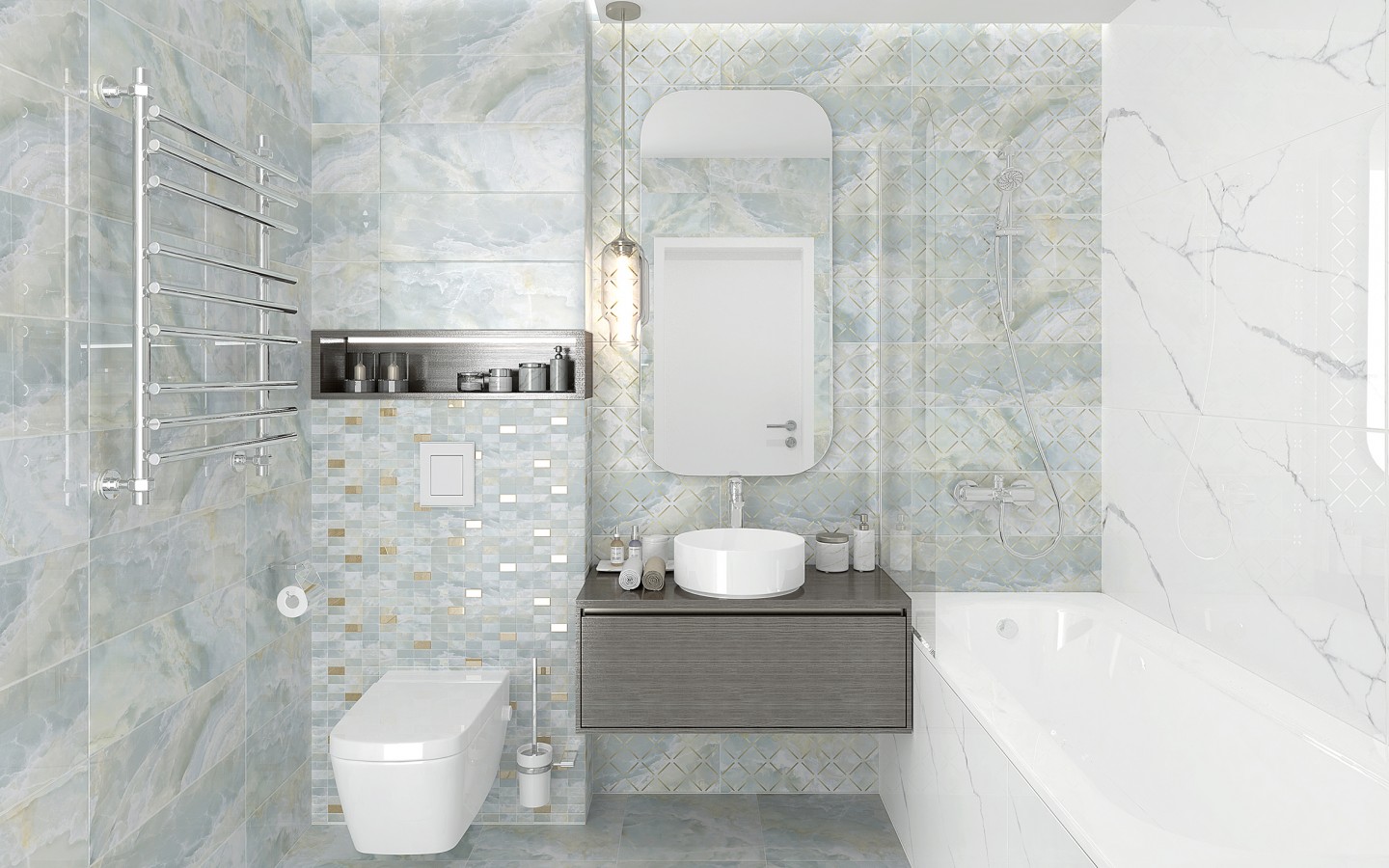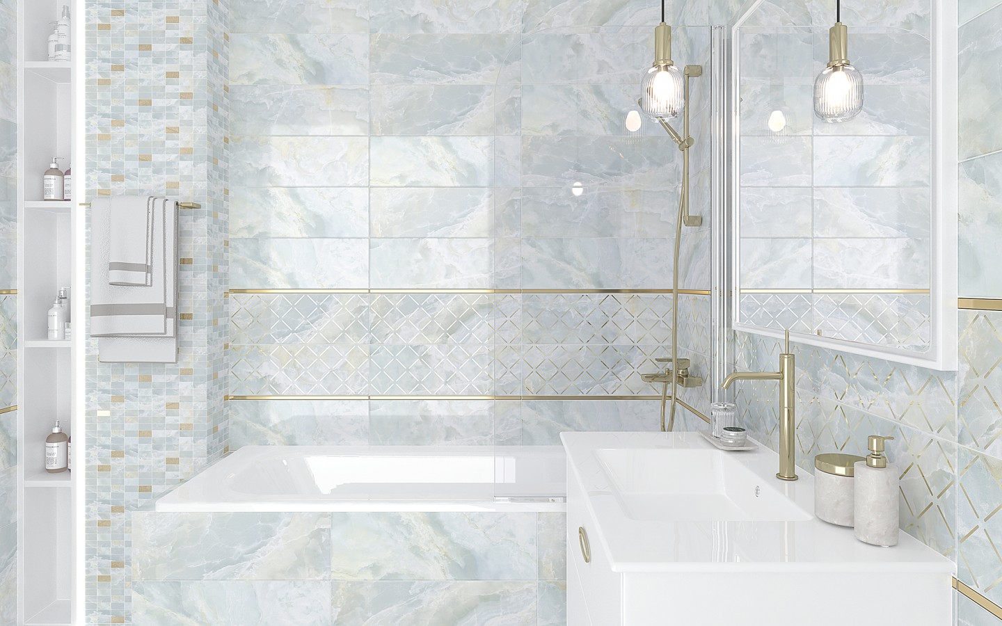 Мозаика Laparet Эдем Декор мозаичный светло-голубой золото MM60156 глазурованная глянцевая 60x20