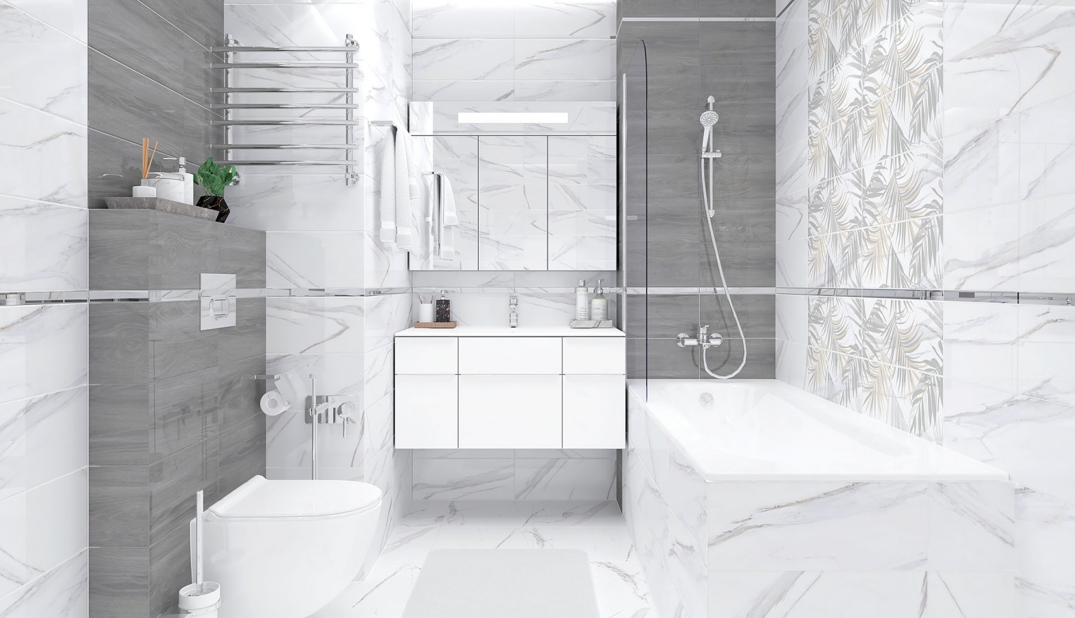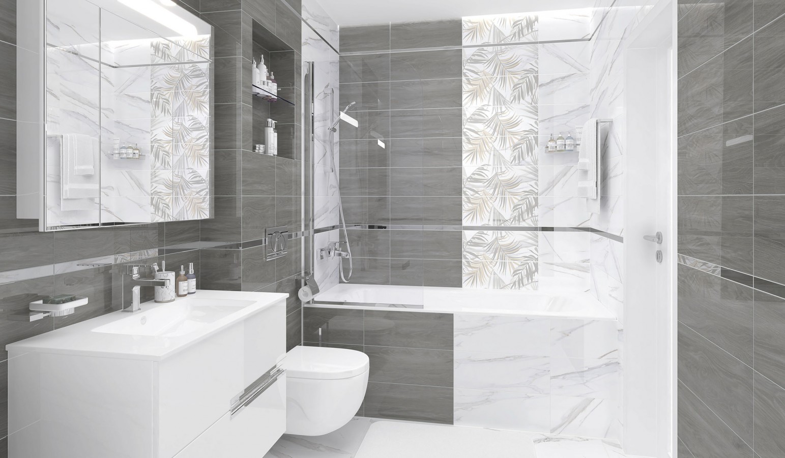 Плитка Laparet Фронда настенная серый глазурованная глянцевая 50x20
